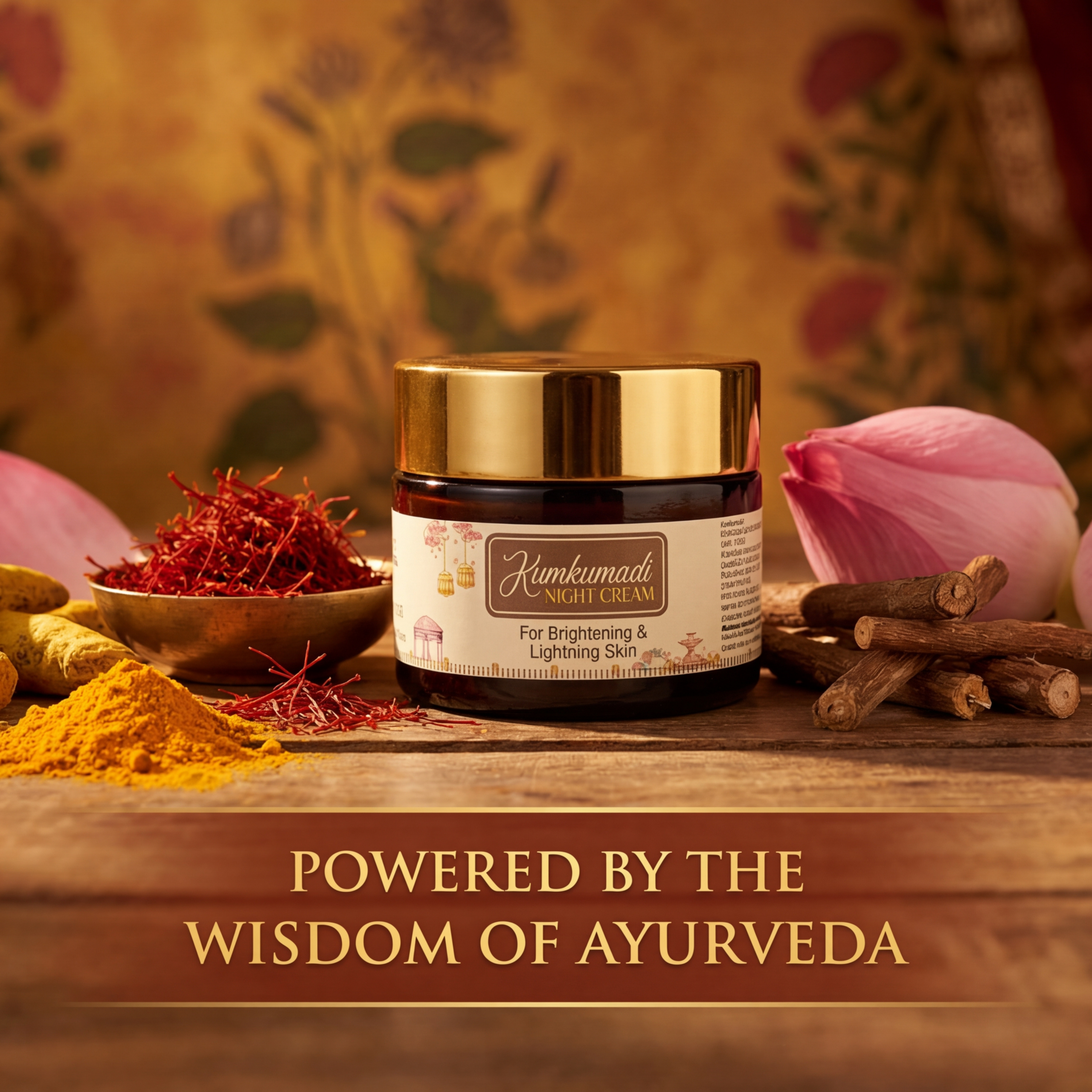 The key ingredient, Kumkumadi (Saffron), has been used in Ayurveda for centuries to improve complexion, reduce pigmentation, and enhance skin radiance. Combined with natural botanicals such as Aloe Vera and herbal extracts, this cream deeply hydrates the skin while promoting cell renewal during the night.